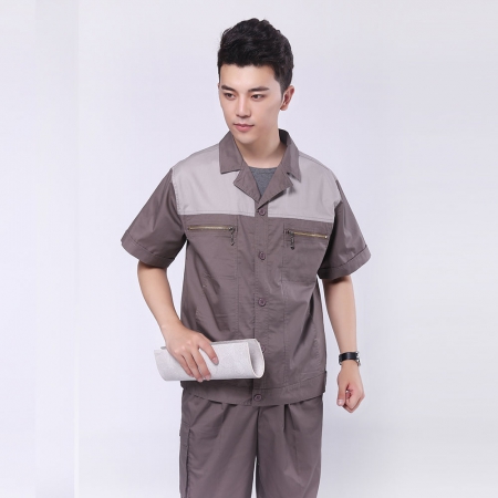 苏州鹰诺服装:铁灰拼菊花短袖工作服AD116-DX