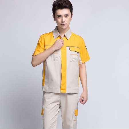苏州鹰诺服装:橘黄拼黄色短袖工作服AD09-5