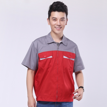 藏青拼大红夏季工作服AD103