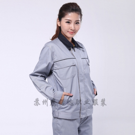 苏州鹰诺服装:浅灰配深灰涤棉纱卡机械加工工作服AC071-JX