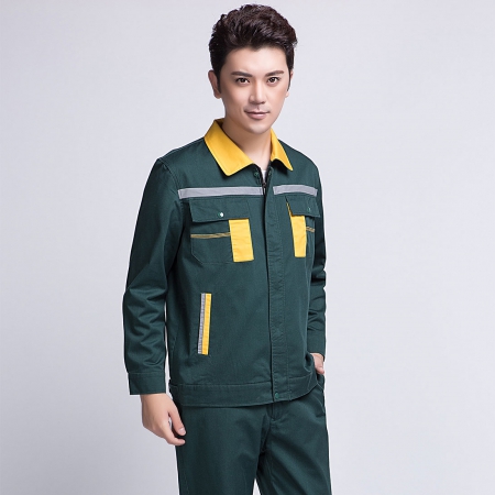 苏州鹰诺服装:蟹青拼黄色汽车维修工作服