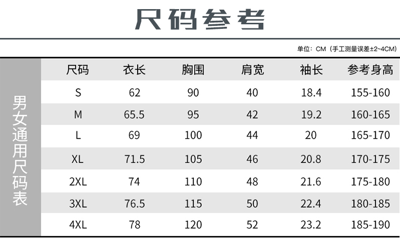 本产品共8个尺码:XS、S、M、L、XL、2XL、3XL、4XL 覆盖99.5%的人群。查看尺码表>