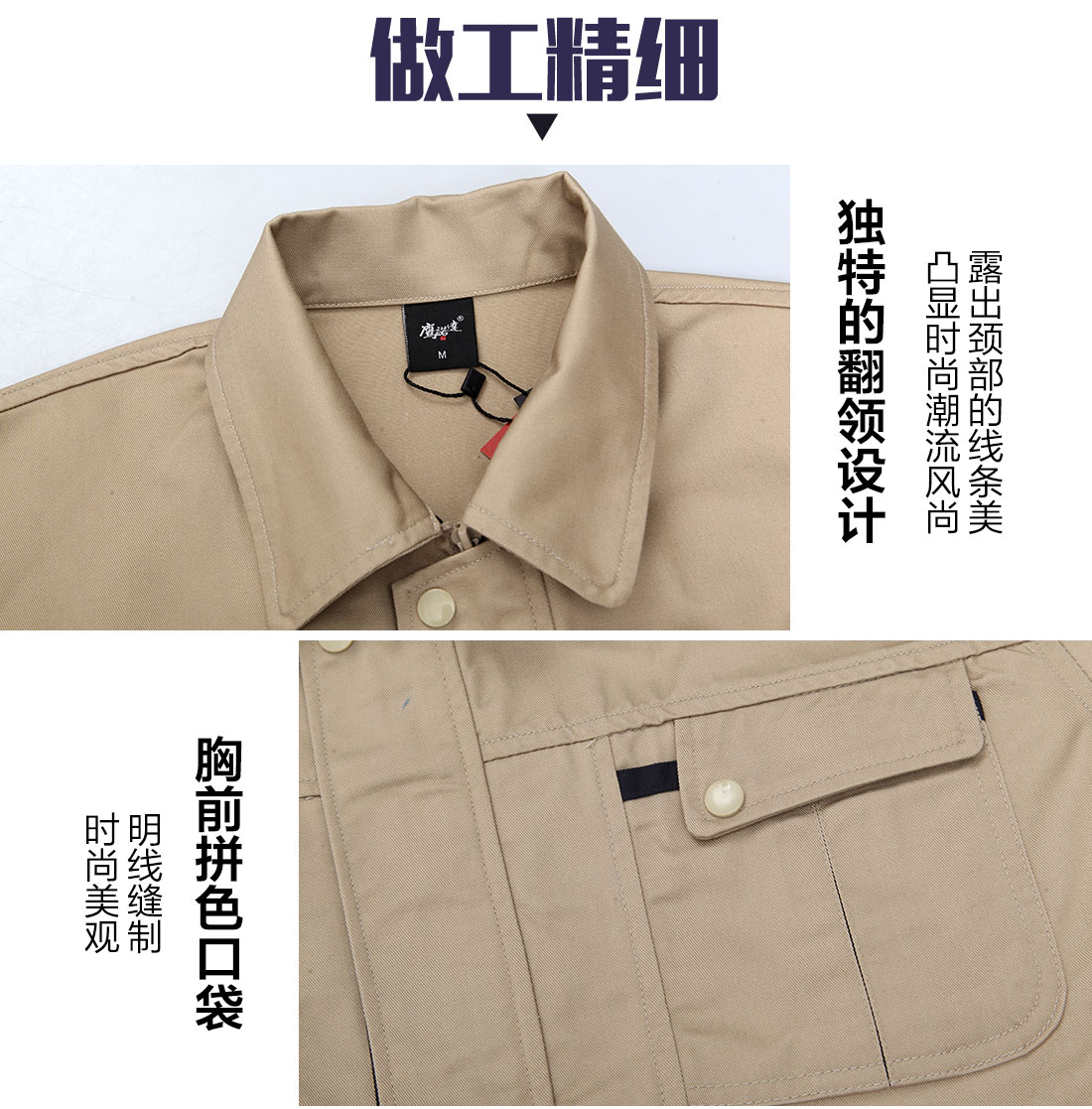 驼色配深蓝涤棉纱卡造纸厂员工工作服AC073-YS