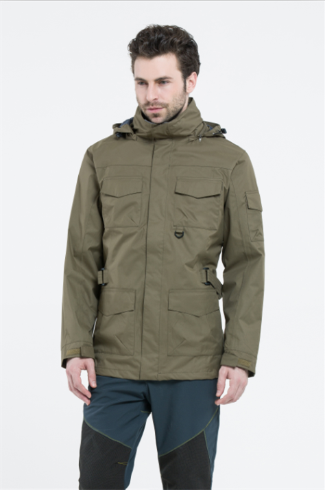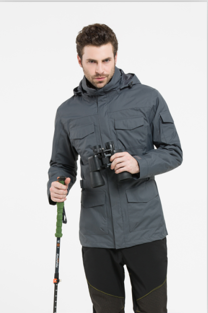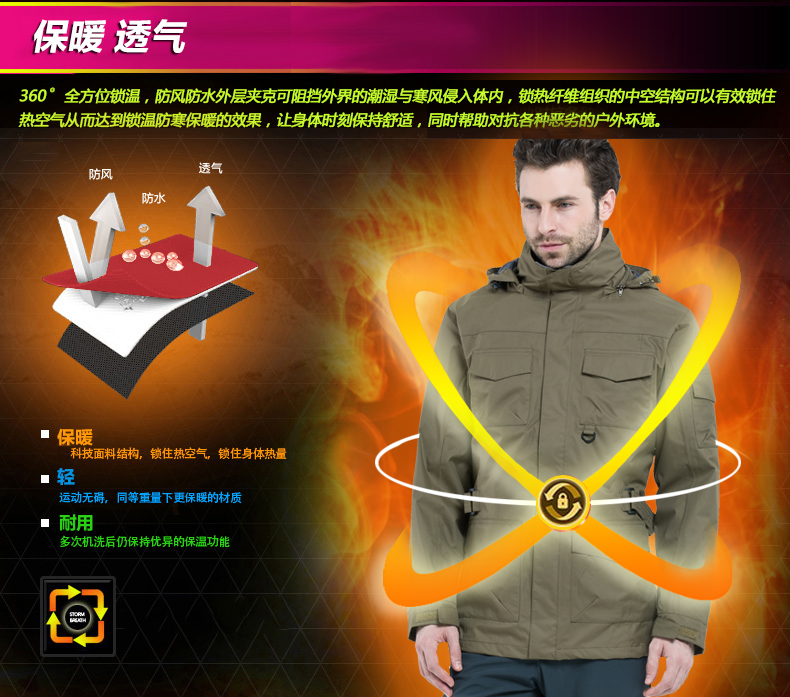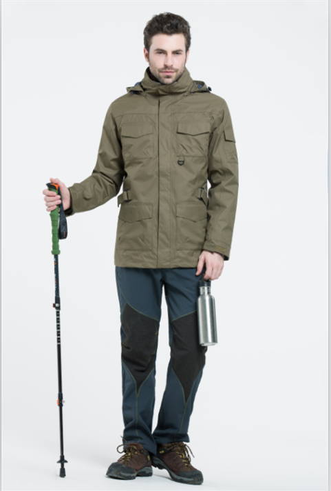 户外冲锋衣男款户外冲锋衣高端保暖三合一冲锋衣冲锋衣适合春夏秋冬户外运动冲锋衣面料科技面料冲锋衣功能:防风防水保暖透气等透气测试透气测试循环锁温,持久保暖卡其色冲锋衣可拆卸风帽门襟拉头展示外套大收纳袋耐用防风收紧贴宽大魔术粘贴腰带胸前防盗封闭口袋