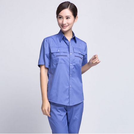 苏州鹰诺服装:深兰色短袖工作服AD04-2