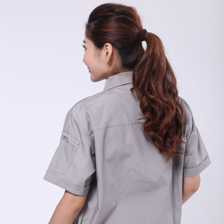 苏州鹰诺服装:湖蓝拼浅灰工作服AC20-2