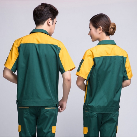 苏州鹰诺服装:黄拼驼色汽修工作服AC20-4