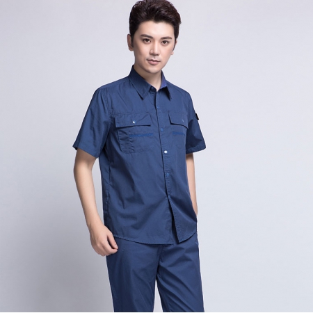 卡其拼藏青涤棉纱卡长袖工衣AC109