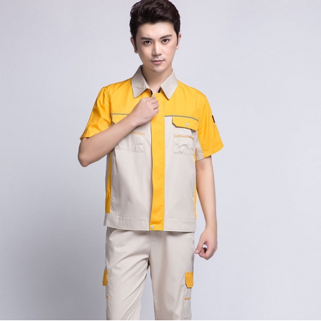苏州鹰诺服装:蟹清拼橘黄工作服AC06-4