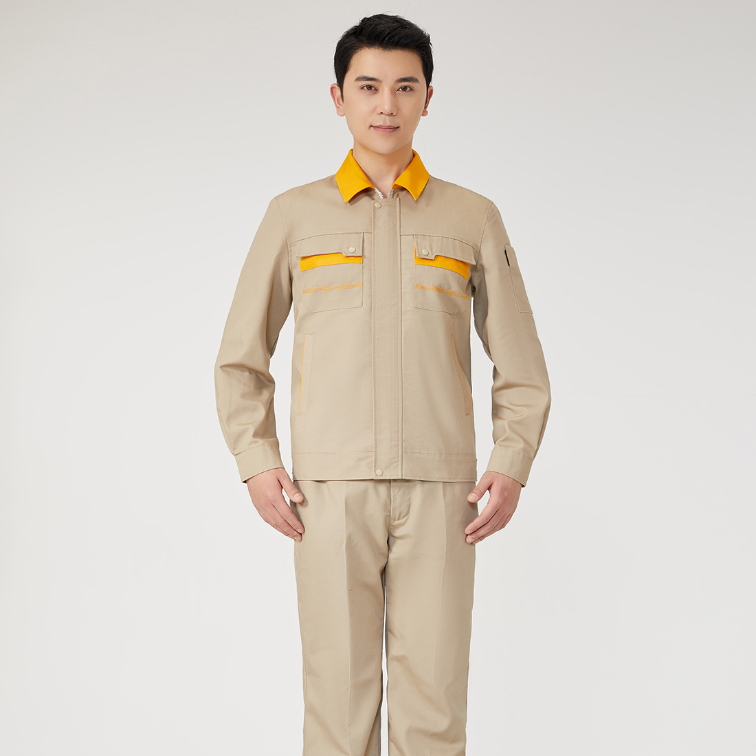 苏州鹰诺服装:驼色拼黄色工作服AC14-4