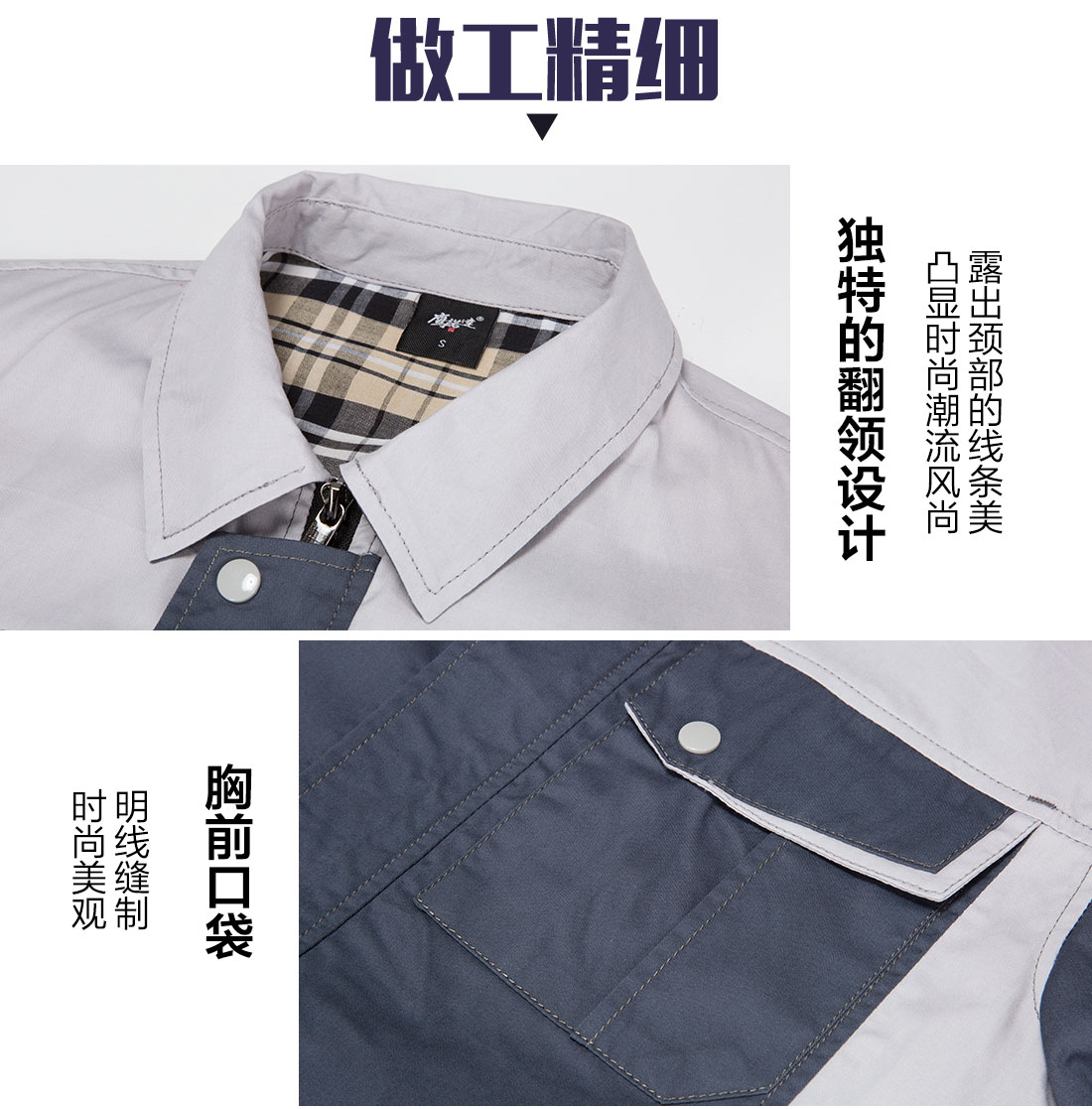 灰拼米色夏季工作服AD14-3