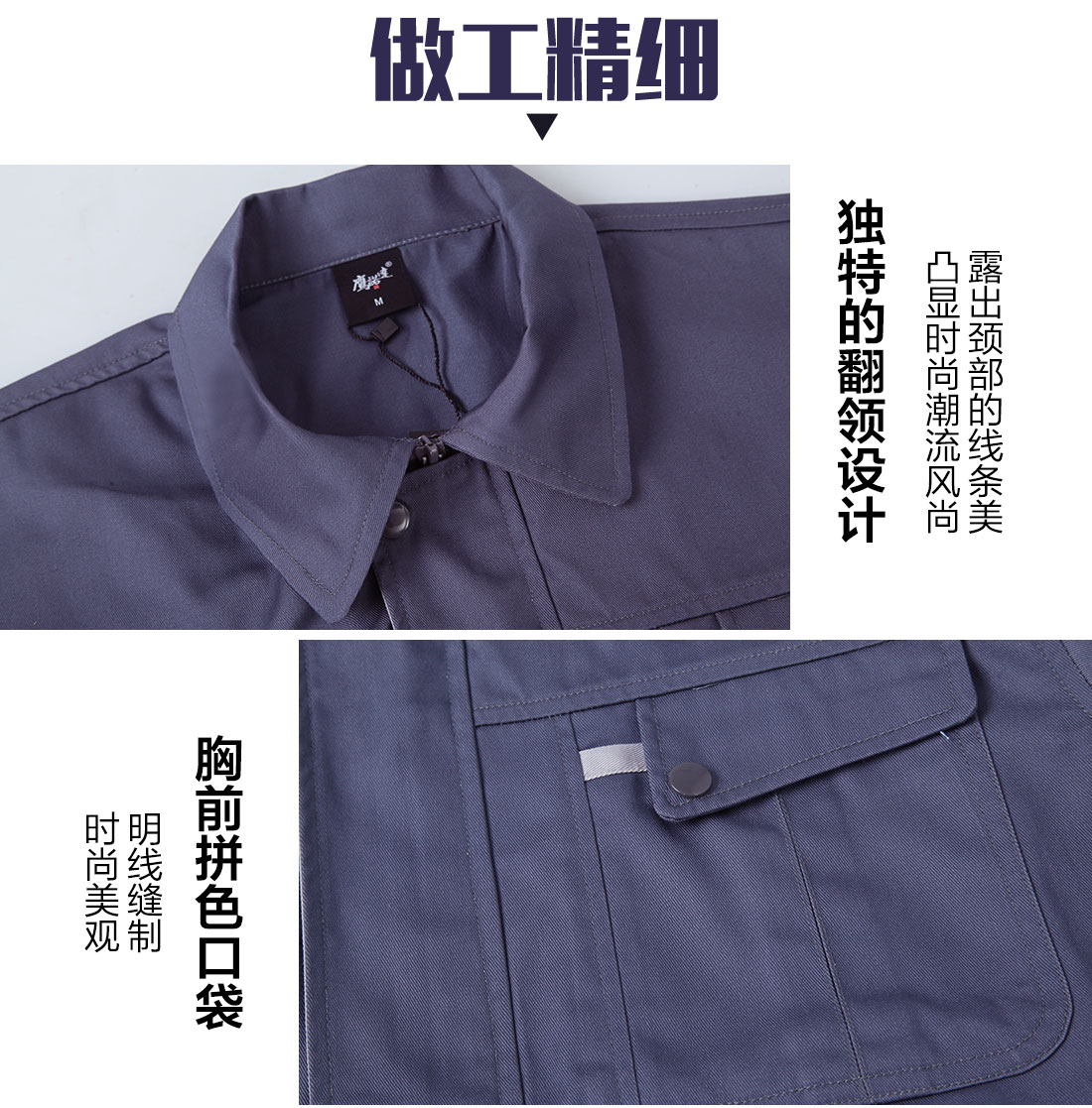 游客于 2017-08-28 08:48:19 发表深灰配浅灰涤棉纱卡化工厂工作服AC077