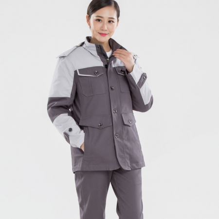 艳蓝配浅灰涤棉纱卡电力防护服AC072-DG
