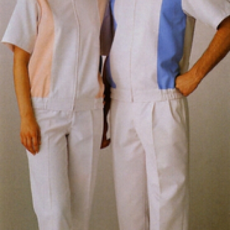 苏州鹰诺服装:米色拼藏青防静电服AD087-JD