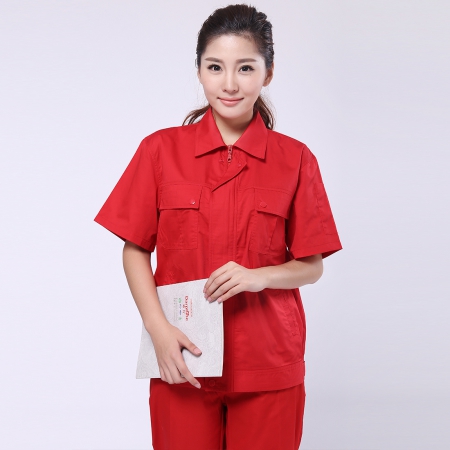 苏州鹰诺服装:大红配浅灰静电服AD078-JD