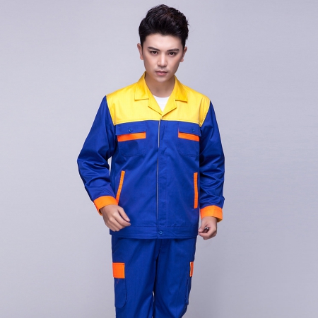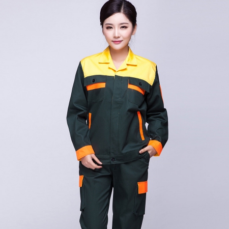 苏州鹰诺服装:蟹青拼黄色汽车维修工作服