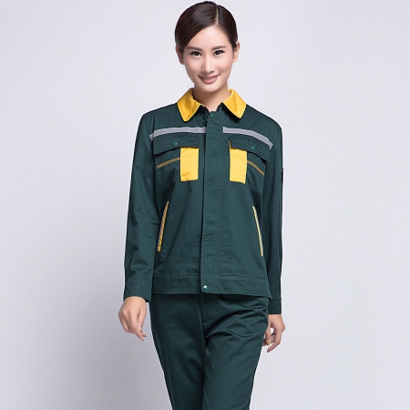 苏州鹰诺服装:邮电绿拼色汽车厂工作服AC03-3