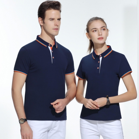 苏州鹰诺服装:桔色提花领莱赛尔纤维棉Polo衫ID6120-4