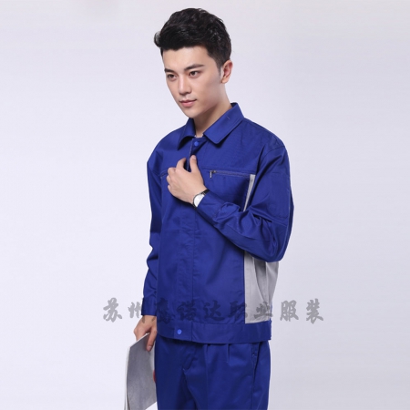 苏州鹰诺服装:艳蓝配浅灰涤棉纱卡物流运输工作服AC081-WL