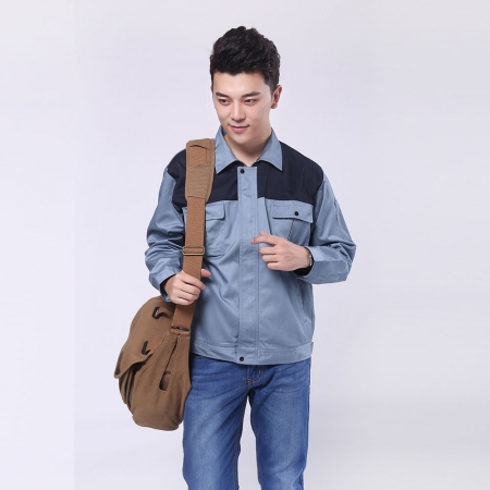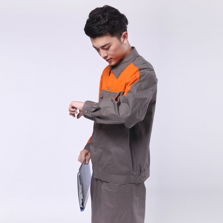 苏州鹰诺服装:灰色拼橘黄春秋工作服AC024-1-CQ