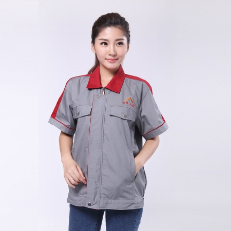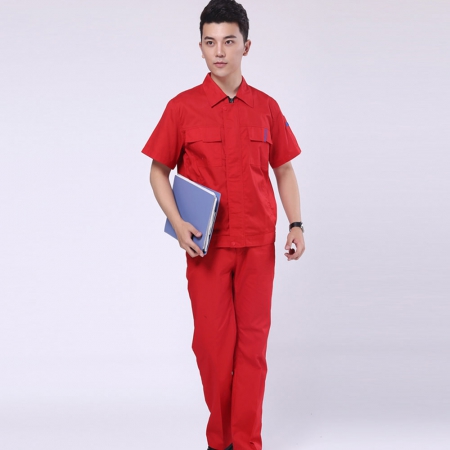苏州鹰诺服装:大红色夏季工作服AD090-XJ