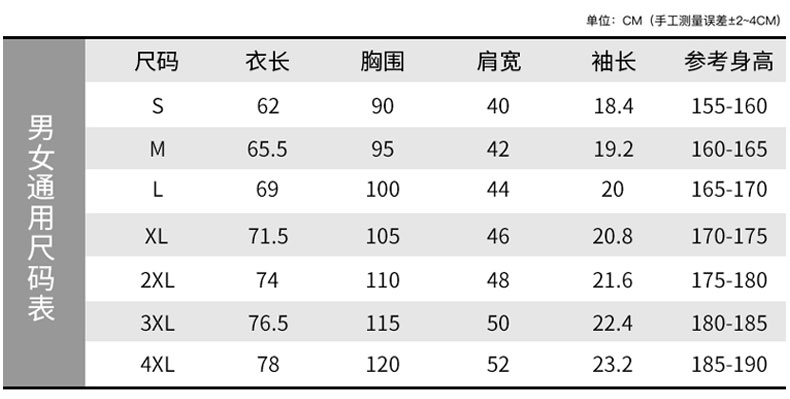 本产品共8个尺码:XS、S、M、L、XL、2XL、3XL、4XL 覆盖99.5%的人群。查看尺码表>