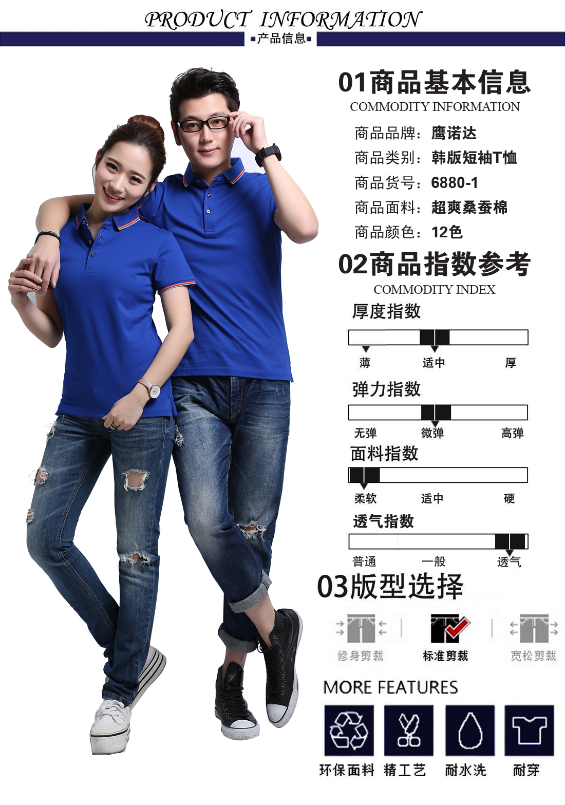 - 游客于 2017-06-20 08:51:05 发表苏州鹰诺服装:牛兰提花翻领超爽蚕丝棉Polo衫ID6880-1
