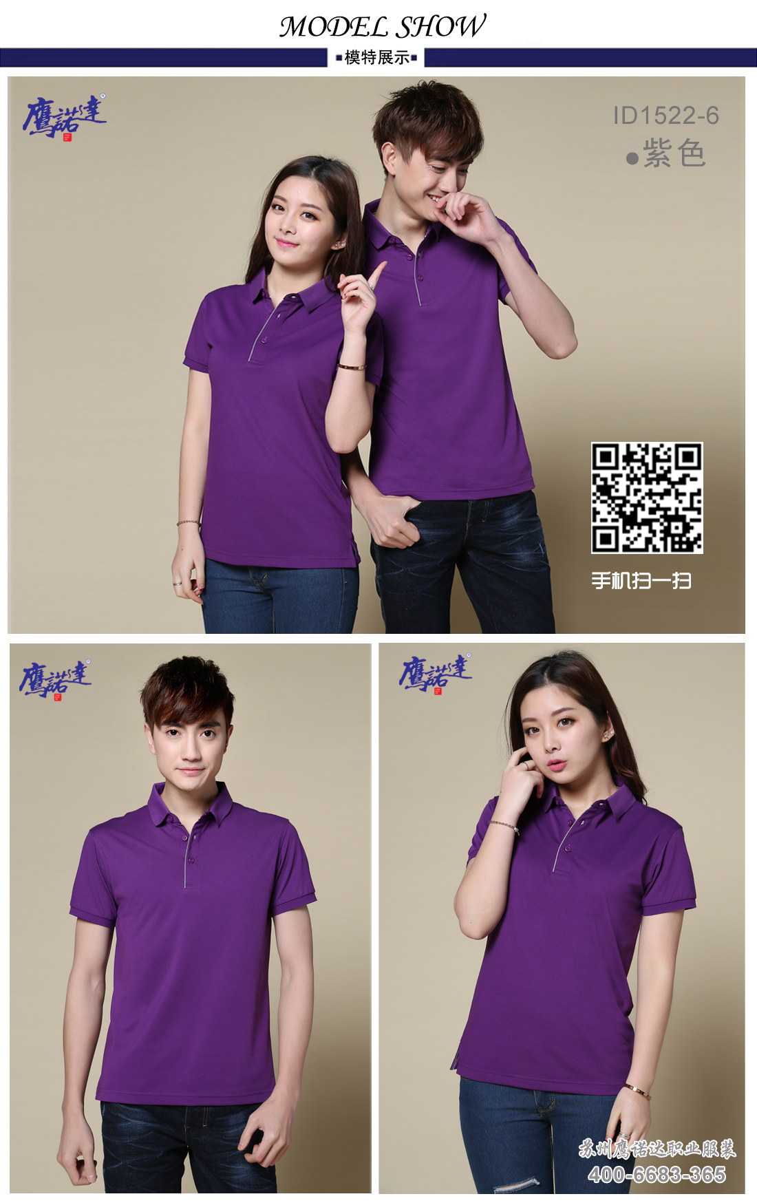 紫色翻领CVC牛奶丝T恤衫ID1522-6