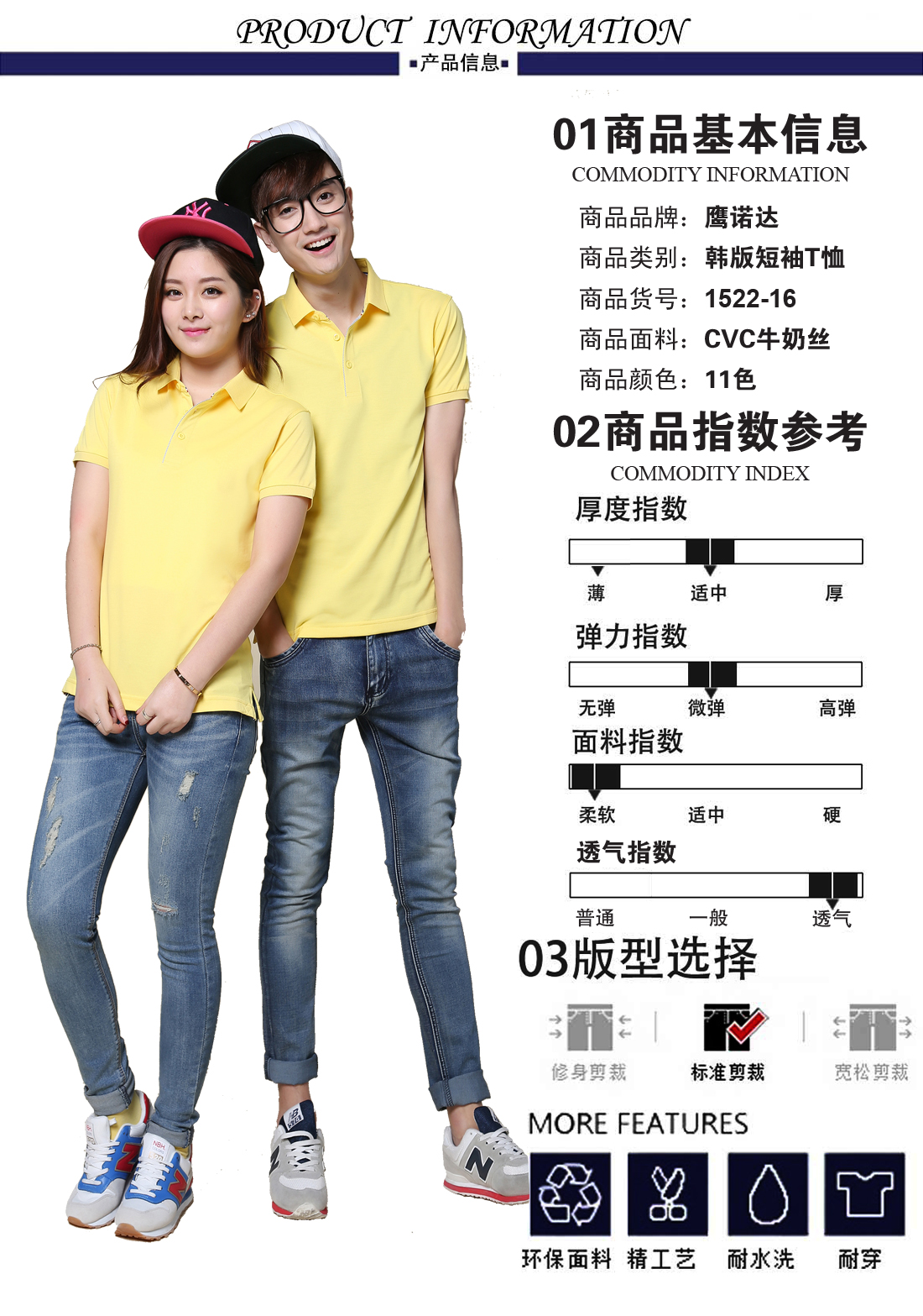 黄色翻领CVC牛奶丝Polo衫ID1522-16