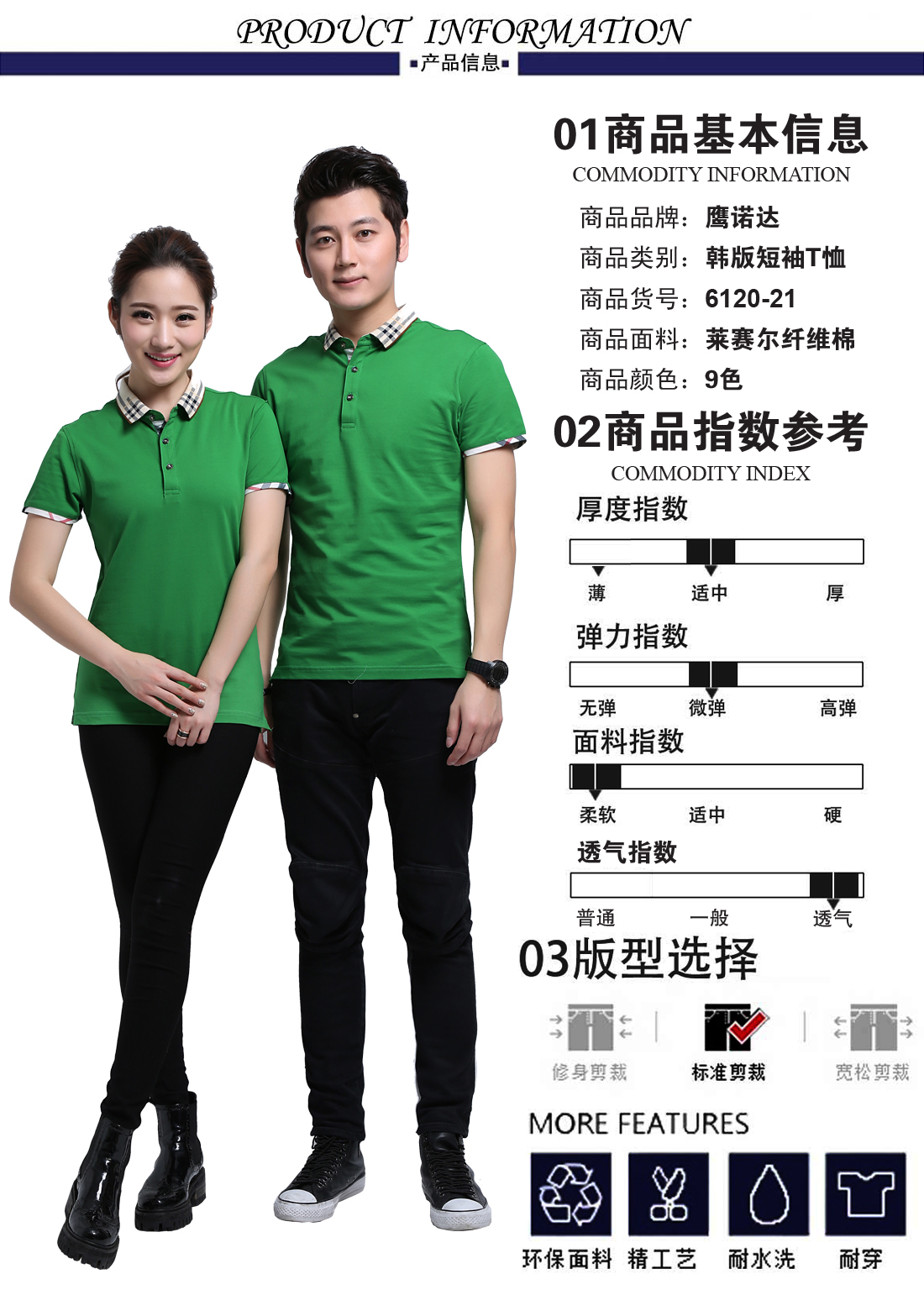 - 游客于 2017-06-20 08:50:36 发表苏州鹰诺服装:叶绿提花领莱赛尔纤维棉Polo衫ID6120-21