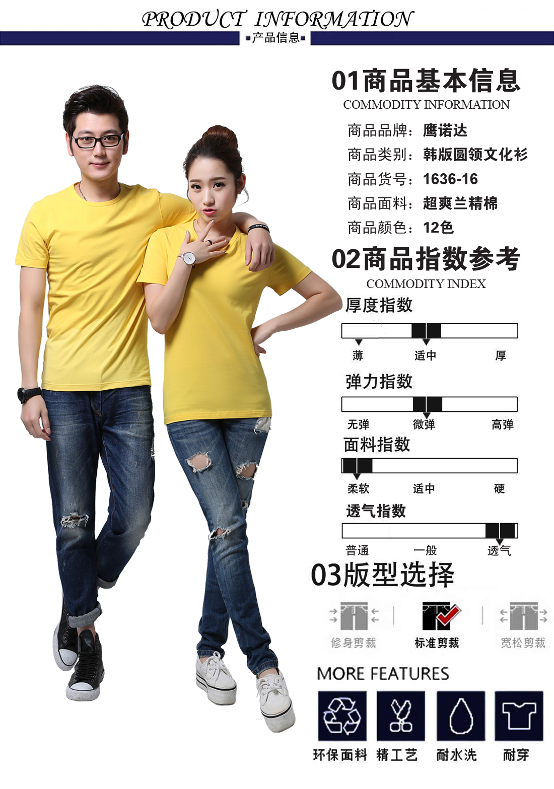 黄色超爽兰精棉圆领衫ID1636-16