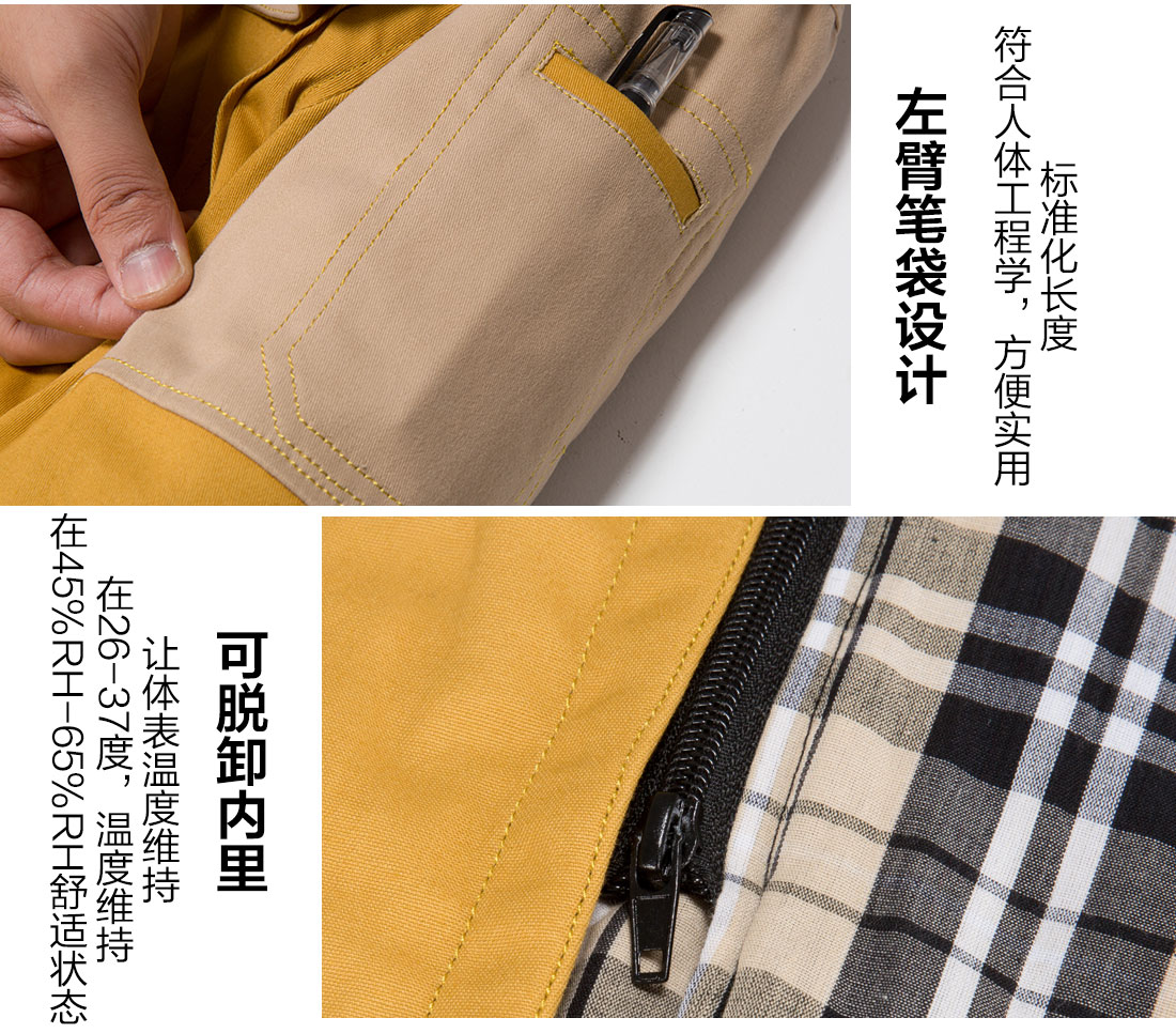 - 游客于 2018-04-19 11:39:50 发表冬季服装厂家冬季工作服黄拼灰色MF20-4