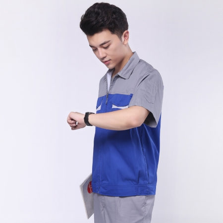 苏州鹰诺服装:湖蓝拼浅灰工作服AC20-2