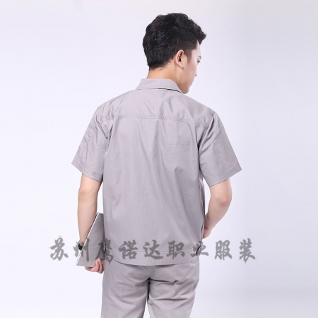 苏州鹰诺服装:浅灰拼绿色五金行业工作服AC121
