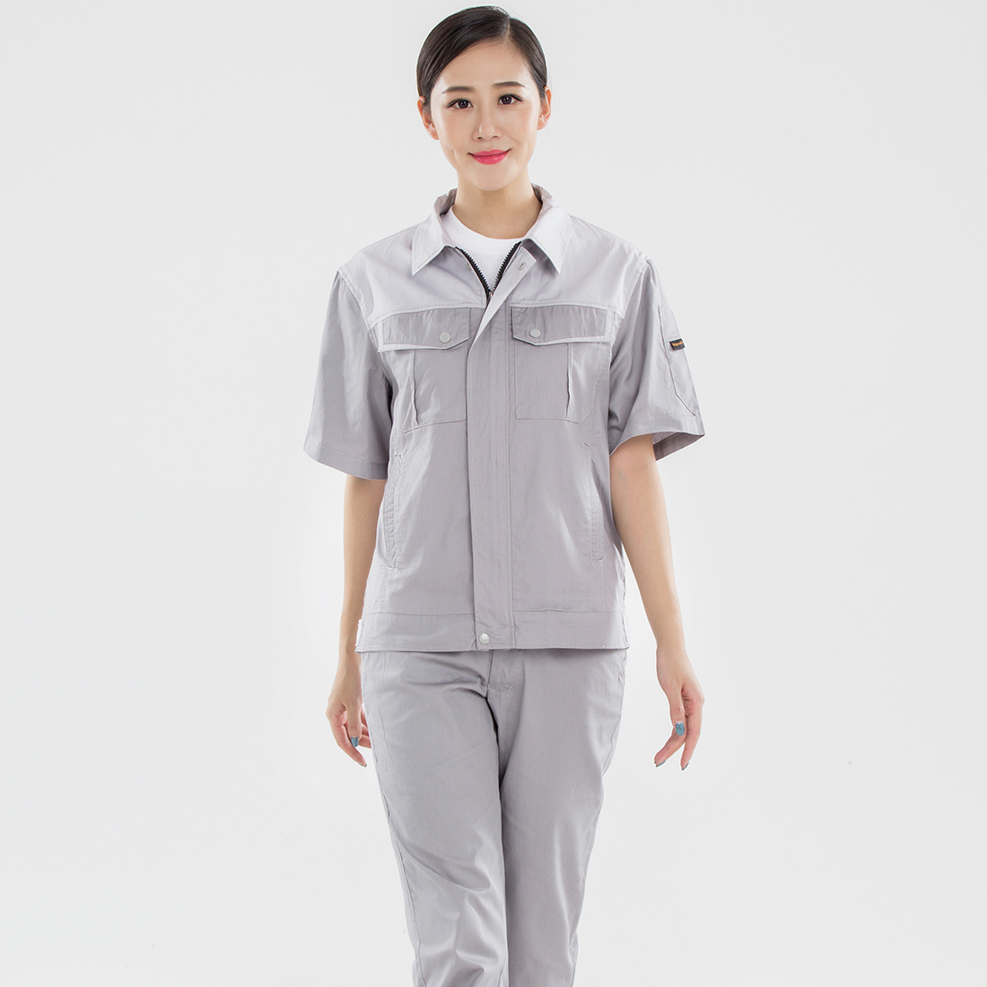 灰拼米白色夏季工作服AD20-4